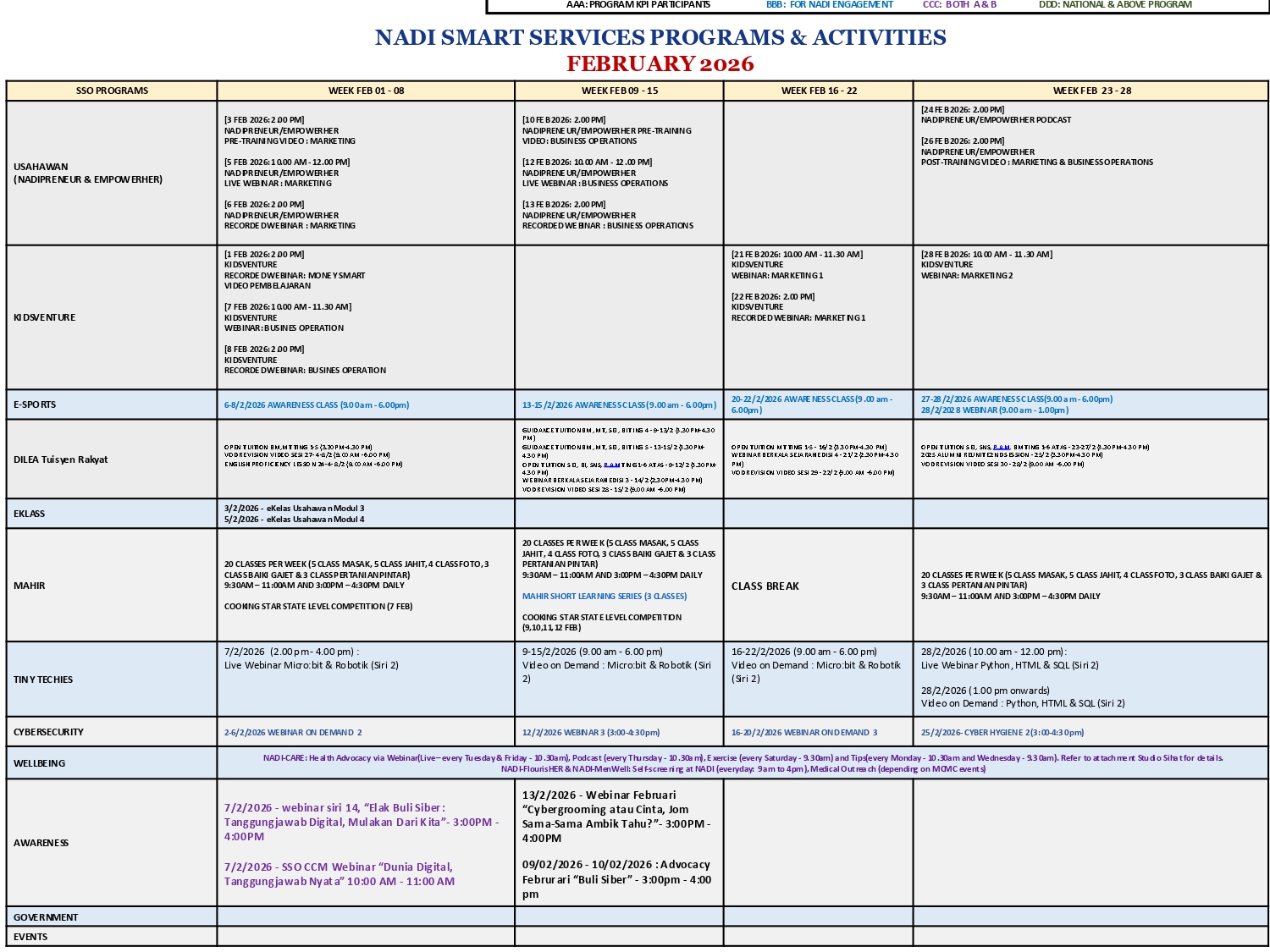 Tarikh 6 Februari 2026 Masa 8.00 Pagi – 6.00 Petang Lokasi NADI Mahligai Peserta 3 Orang Tujuan : Peserta dapat memperbaiki kemahiran permainan dan juga memperoleh kemahiran kendiri yang bernilai yang akan membantu mereka dalam akademik dan peluang kerjaya. Aktiviti […]