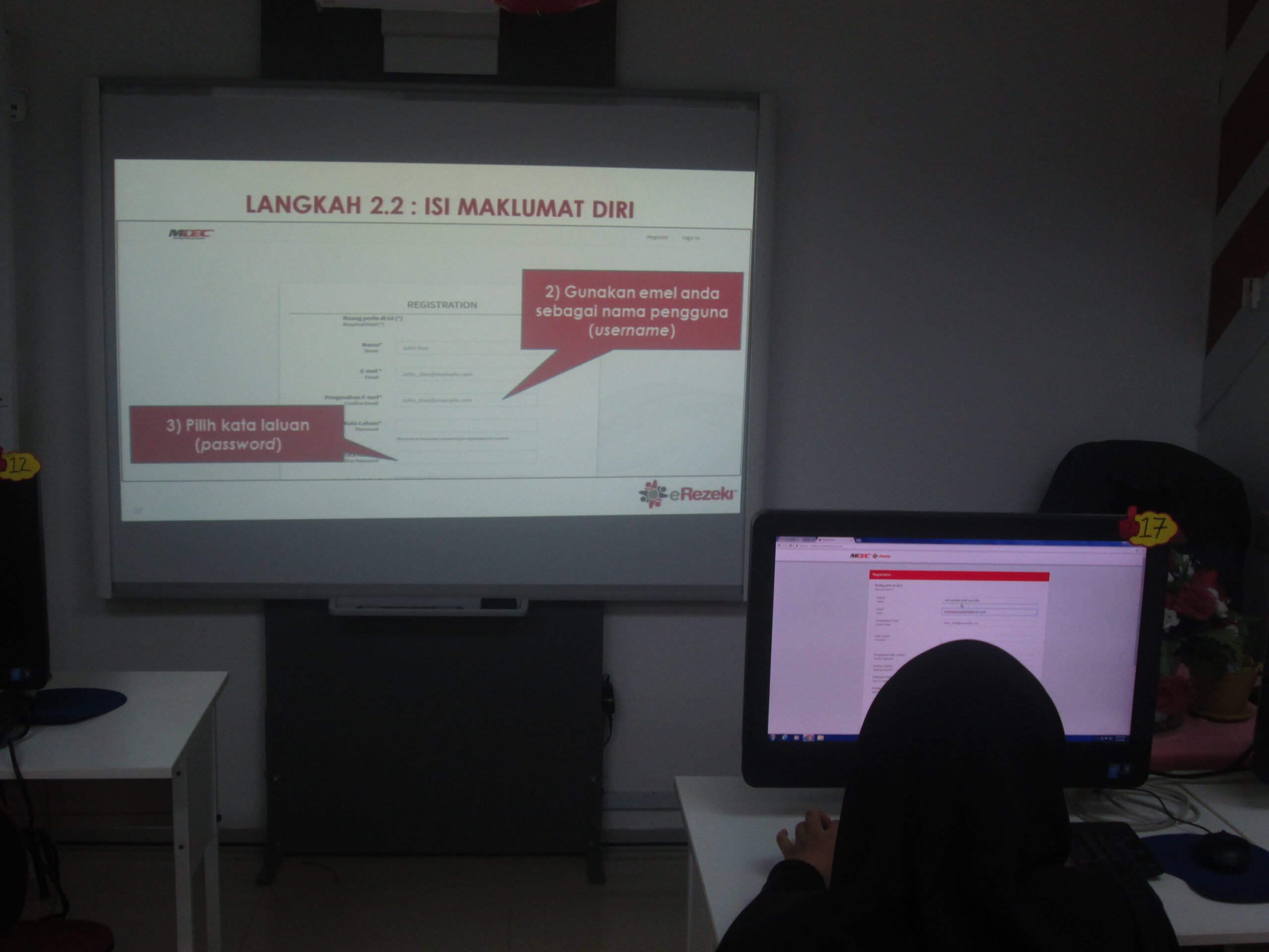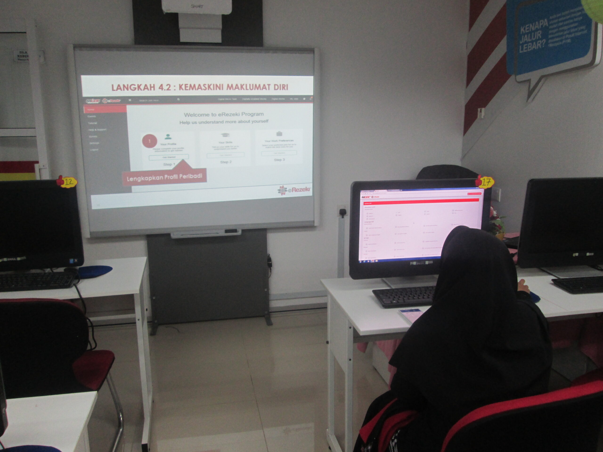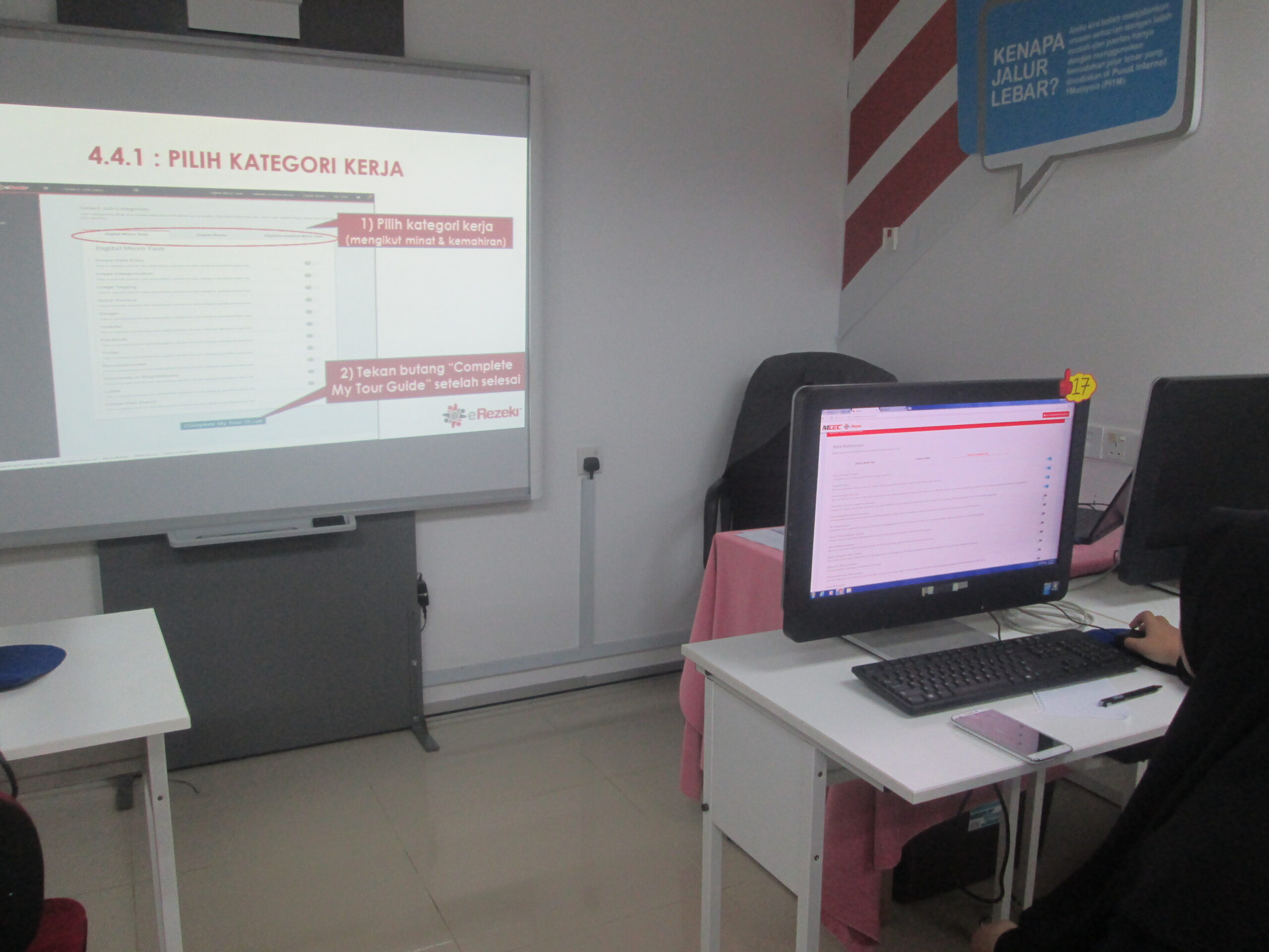 Peserta akan diberi latihan asas dan diberi tunjuk ajar cara menggunakan web e-rezeki dalam pemilihan tugasan mengikut kemampuan dan kelebihan masing-masing.